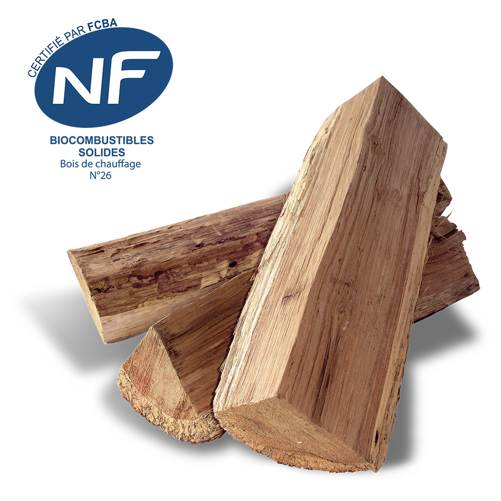 Les bûches de bois Premium certifiées NF Bois de chauffage (https://www.fcba.fr/) et Bois de France sont déjà fendues, partiellement écorcées et coupées en 25, 30 et 40 centimètres.