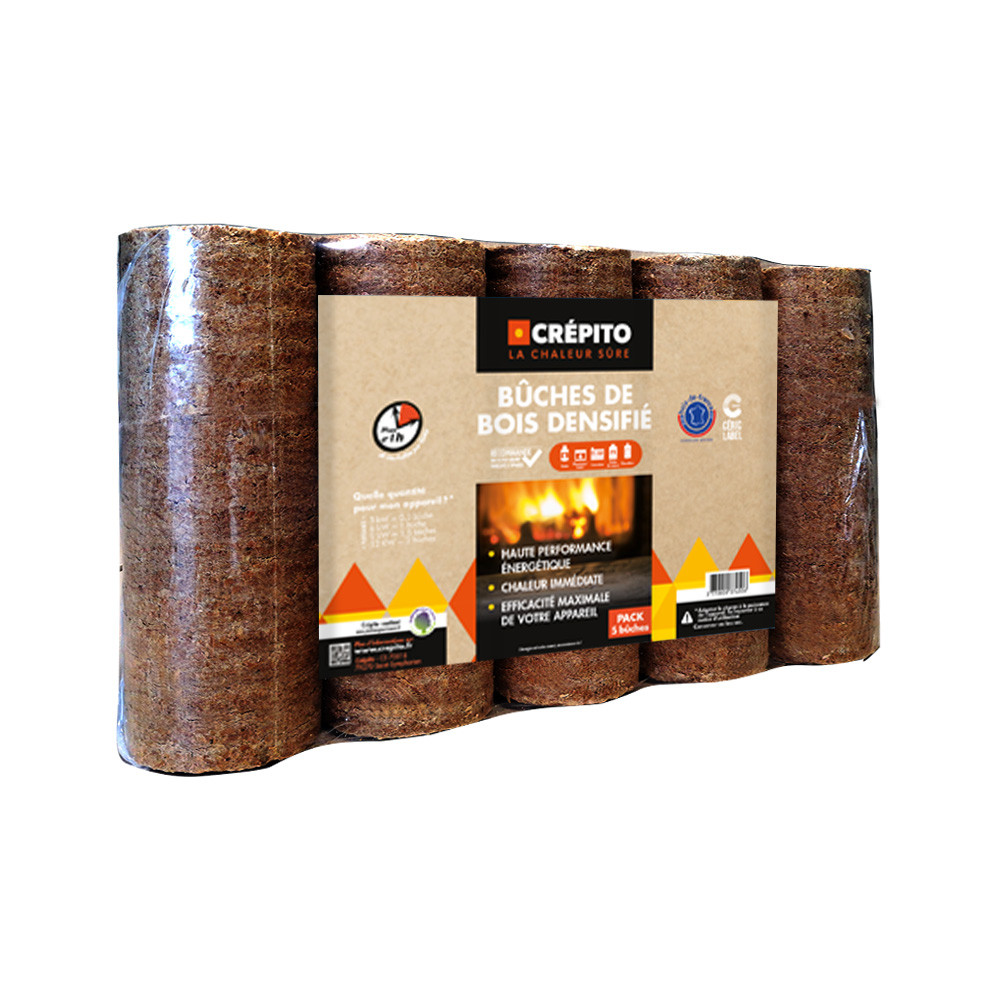 Les bûches densifiées assurent un haut rendement énergétique et nécessitent très peu d’espace de stockage. C'est un parfait complément de chauffage aux bûches premium. Nos bûches compressées sont régulièrement contrôlées par le laboratoire CERIC et sont certifiés Bois de France.