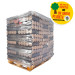 La dimension d'une palette de 140 packs de 5 bûches densifiées 24 cm (± 7,5kg) : 90x120xH ≈ 122 à 134 cm soit 14 couches de 10 packs.